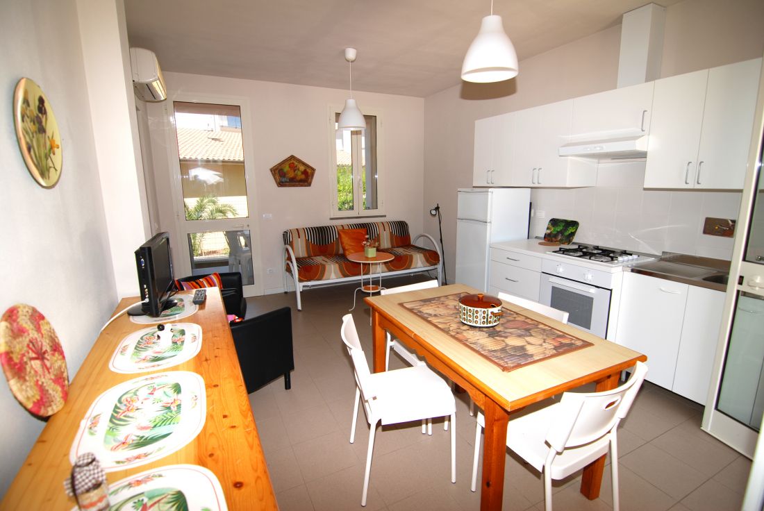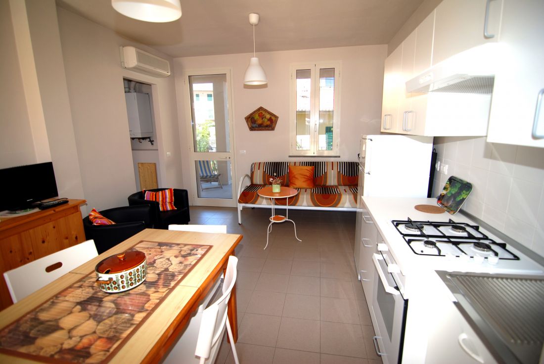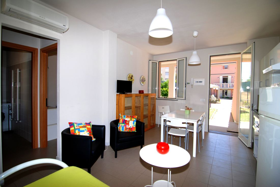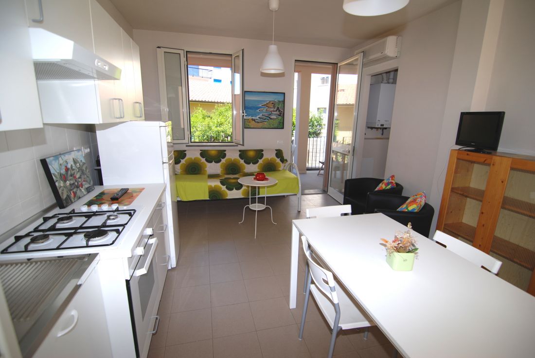 It is a great, fresh, one bedroom apartment with a spacious living room, dining area and kitchen, bathroom with shower and washing machine. The apartment boasts two magnificent, large verandas, one on front and one on the back, and a small garden, independent and fenced. It can accommodate four people, three in the bedroom (one splitable double and one single bed) and one in the living room (sofa bed). Possibility of lunch and stay on the back porch. Parking space in front of the apartment, inside a fenced courtyard.
