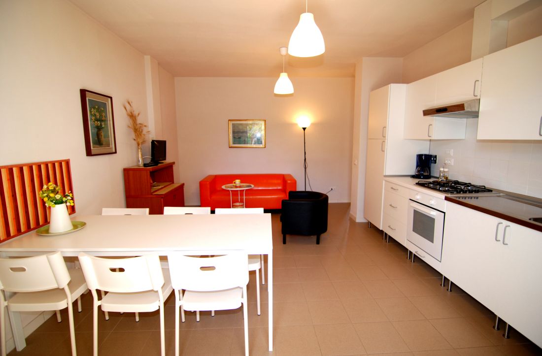 Bell'appartamento, ben arredato, nuovissimo. Grande soggiorno con cucina e pranzo, due camere da letto (una con letto doppio e una con letto doppio e due letti a castello). Un letto chiudibile puo` essere aggiunto su richiesta in soggiorno. Due bagni con doccia e lavatrice. Spazio riservato ed attrezzato nel giardinetto prospicente l'appartamento. Il pranzo e il soggiorno all'aperto sono possibili anche sul retro, in gazebo assegnato all'appartamento. Posto macchina a disposizione nel parcheggio privato.