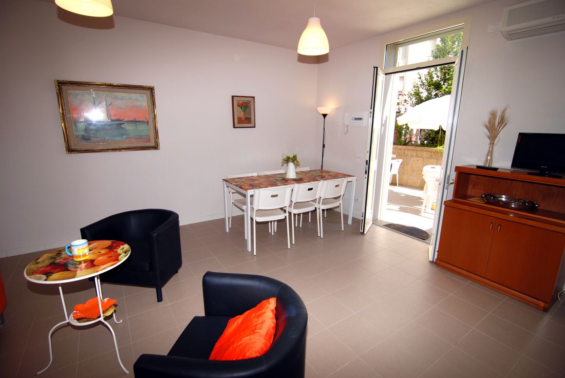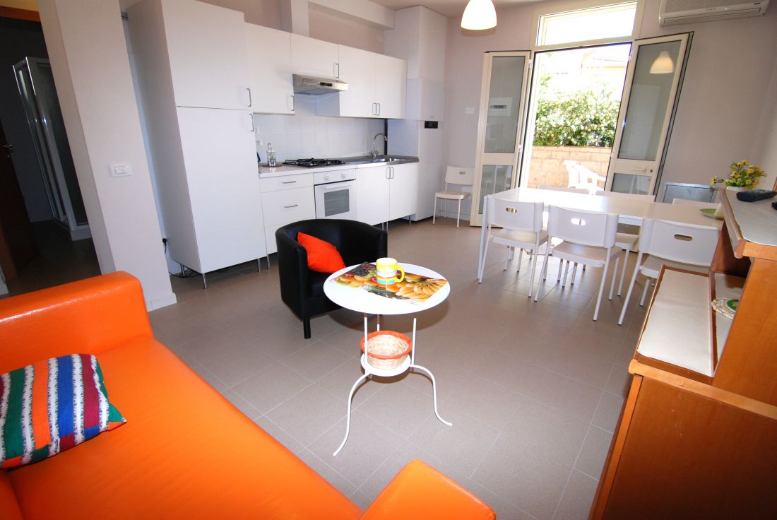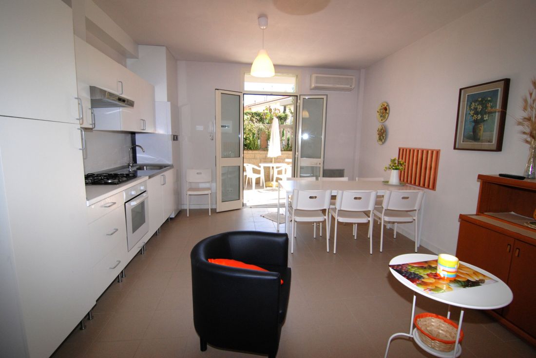 Bell'appartamento, ben arredato, nuovissimo. Grande soggiorno con cucina e pranzo, due camere da letto (una con letto doppio divisibile e letto singolo e l'altra con letto doppio divisibile e due letti a castello). Due bagni con doccia e lavatrice. Spazio riservato ed attrezzato nel giardinetto prospicente l'appartamento. Il pranzo e il soggiorno all'aperto sono possibili anche sul retro, in gazebo assegnato all'appartamento. Posto macchina a disposizione nel parcheggio privato.